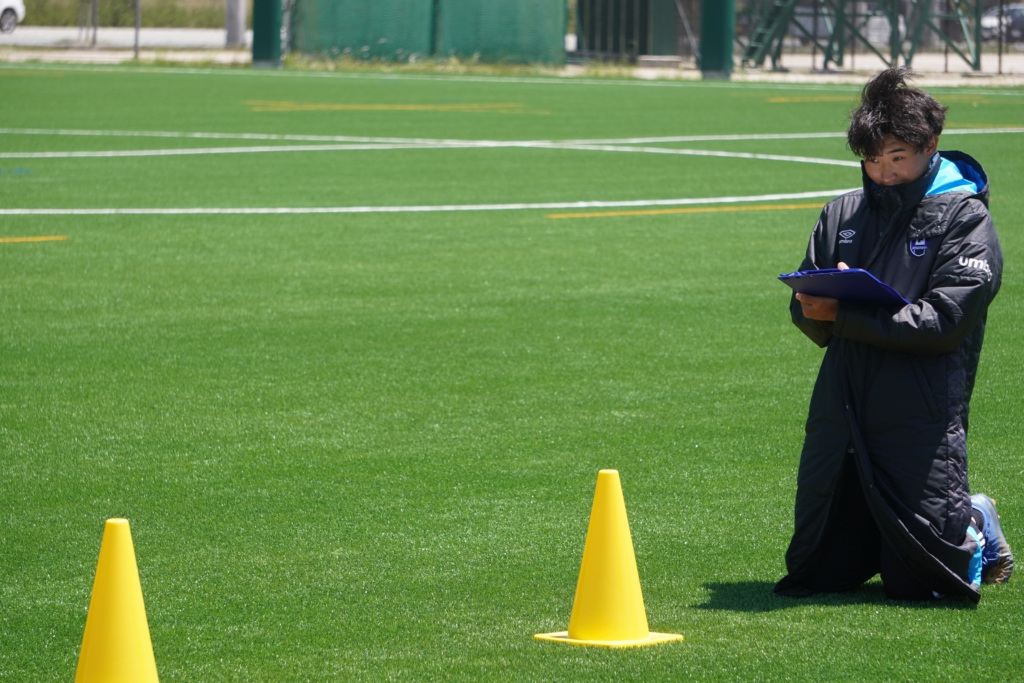 本校サッカーコース在籍中にサッカーコーチC級ライセンスを取得して卒業。2017年から石川県星稜高校とジュニアチームのコーチを経て、2018年から本校サッカーコースの教員として復帰。2022年にはB級ライセンスを取得し、6年目の現在は、箕面キャンパスで1年生チームとなる「履正社CLUB」を指導しています。