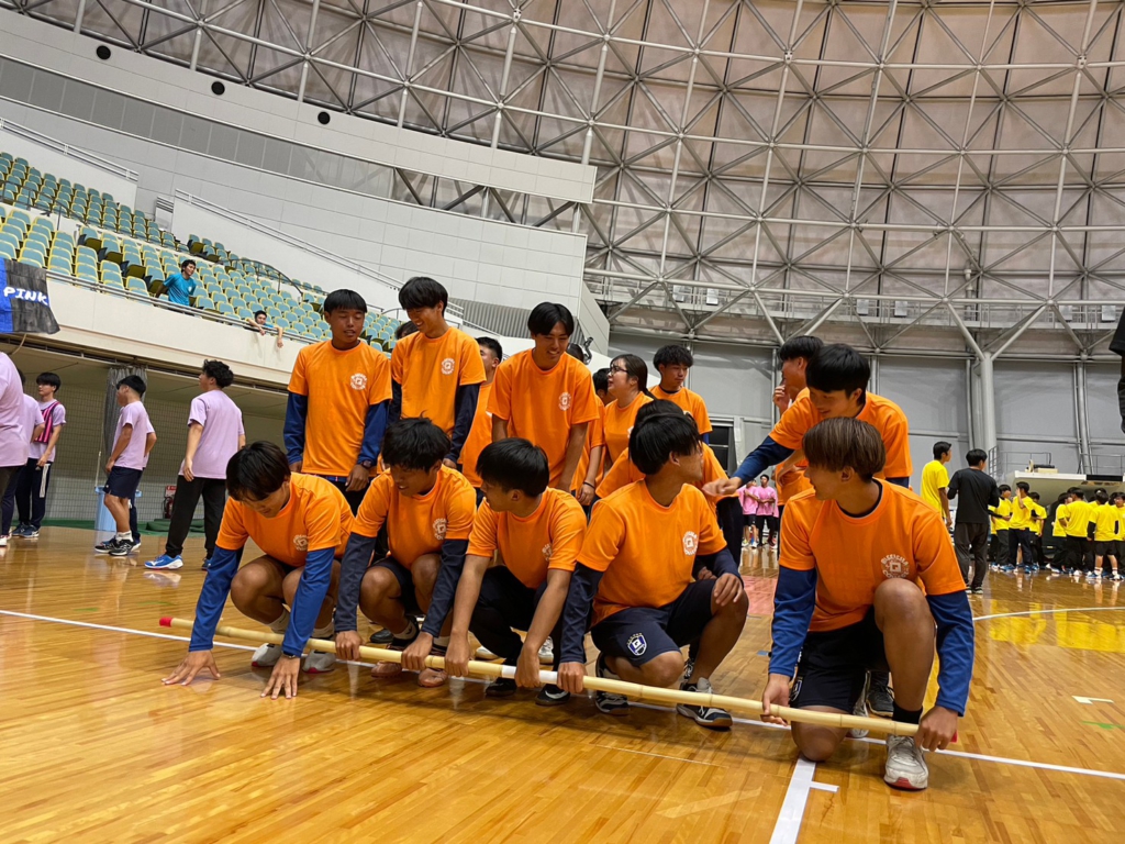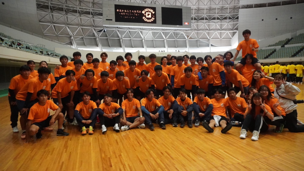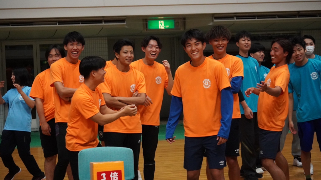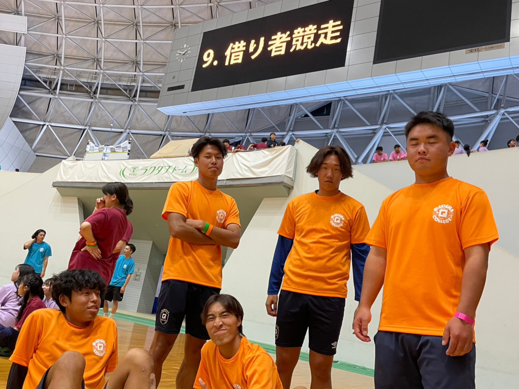 今年はコース・学科対抗ですが、スポーツ外国語学科とサッカーコースの合同チームで挑みました!オレンジ軍団です🍊