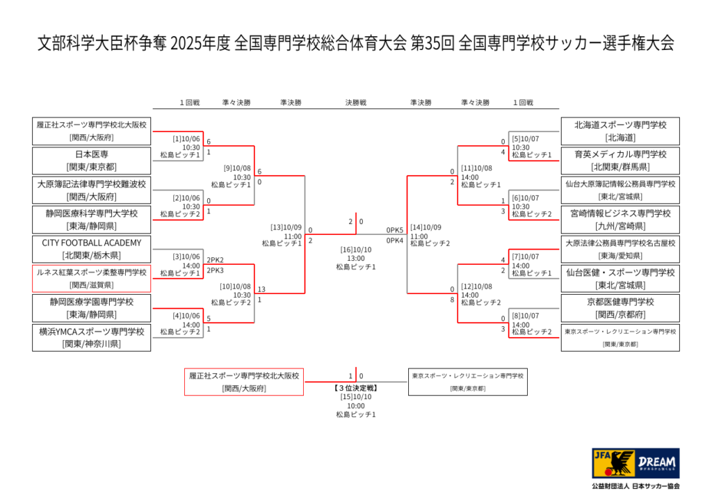 文部科学大臣杯争奪 全国専門学校総合体育大会「第35回 全国専門学校サッカー選手権大会」が、2025年10月6日〜10日、宮城県・松島ピッチで開催されました。全国の専門学校が集い、熱戦が繰り広げられました。