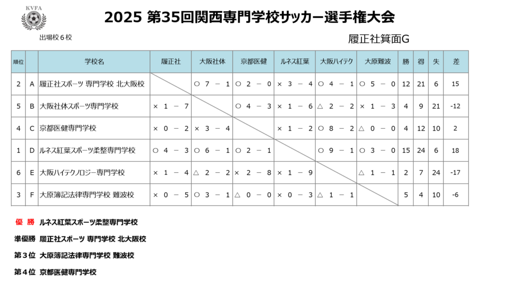 ※上位4校は、第35回全国専門学校サッカー選手権大会(宮城県)への出場権を獲得!