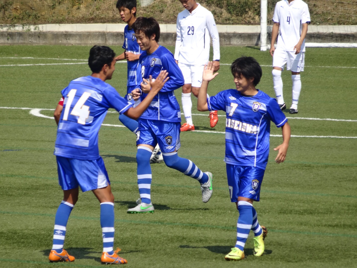 中盤からペナルティーエリア付近で高溝が受け、反転しながら相手DFをかわし、ゴールのサイドへ流し込んだ。