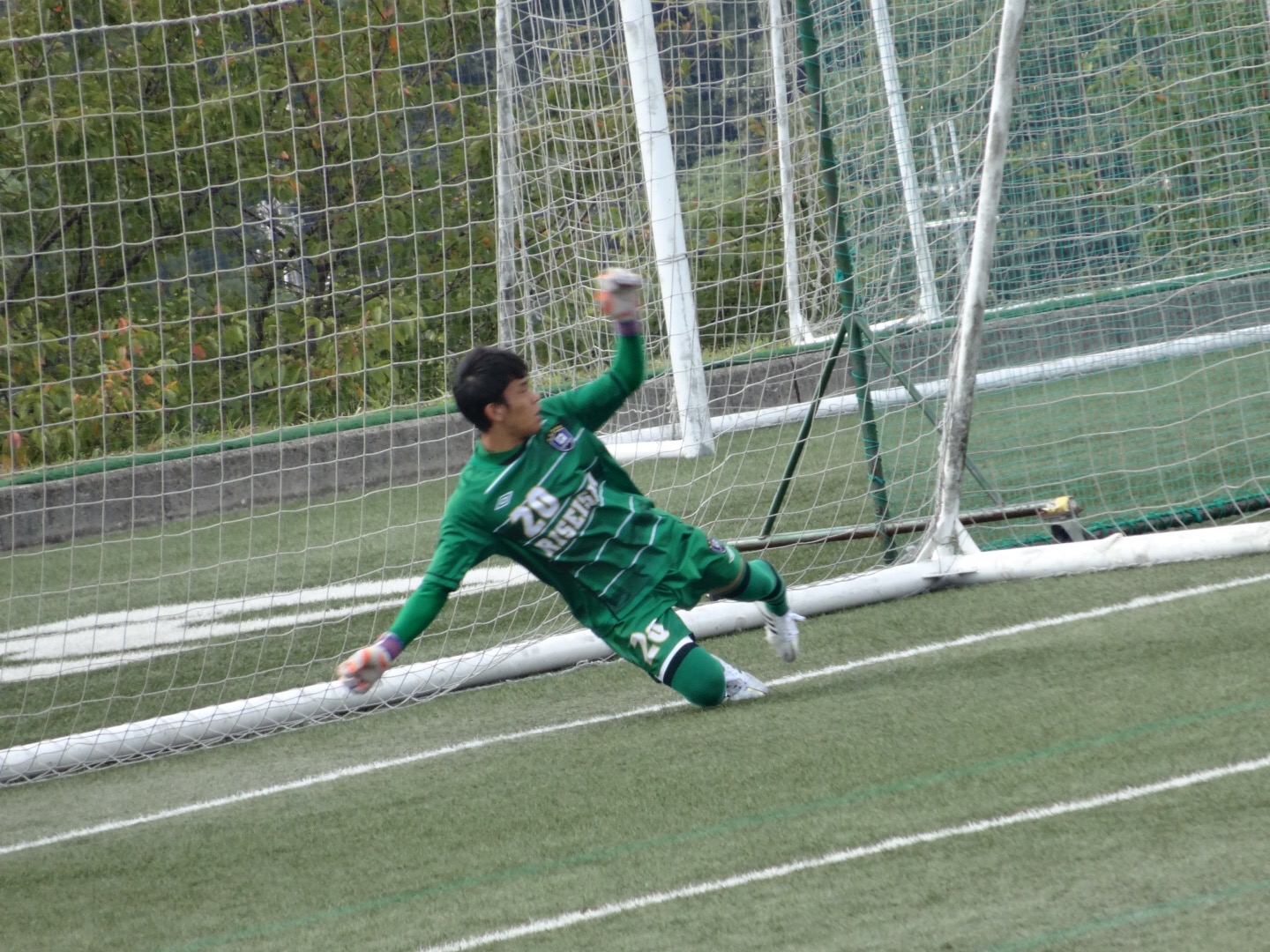 GKの杉原がペナルティーエリア内で相手にファール。再びPKを与えてしまいます。2点目を決められリードを許してしまいます。