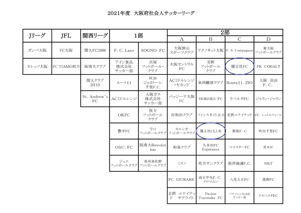 2021年度大阪府社会人サッカーリーグ ブロック分け決定!!