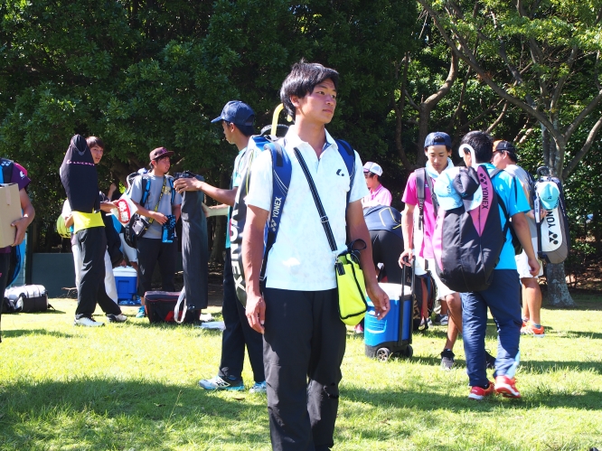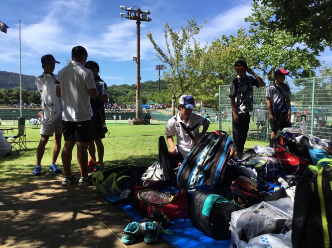 個人戦のベンチでの様子と、帰る前の様子です。荷物を手分けして片付けします。