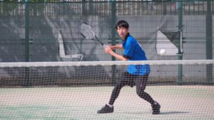 1年生の藤井(右)梶谷ペアとシングルスで出場した堀君