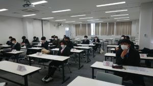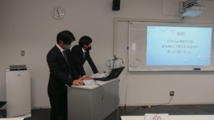 毎年1年生も発表会を聞きますが今年は新型コロナウイルス感染予防のためソフトテニス専攻2年生のみで行いました。