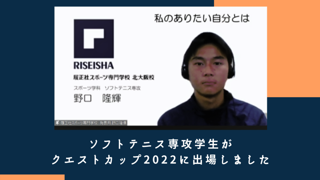 ソフトテニス専攻の野口隆輝さんが、2/20(日)に開催された「クエストカップ2022全国大会」の進路探究部門「ザ・ビジョン」に出場しました。
