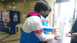 開場後は来場者のチケット確認や検温、消毒や入場後の誘導。