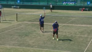男子は1次戦が終わり、1―2、慶應義塾大学の大将ペアの伊藤・野口ペアに本校の平野・木村ペアがファイナルゲームの接戦を制し勝利、2次戦へ。