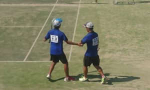 男子は1次戦が終わり、1―2、慶應義塾大学の大将ペアの伊藤・野口ペアに本校の平野・木村ペアがファイナルゲームの接戦を制し勝利、2次戦へ。