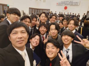 2024.03.10 3/7卒業式が執り行われました。~履正社スポーツ専門学校北大阪校、ソフトテニスコースのブログです。(スポーツ・ソフトテニス・医療・英語の学校)~ 3/7(木)大阪ガーデンパレスにて卒業式が執り行われました。 ソフトテニスコースから22名の学生が卒業しました。 履正社での学校生活を終えそれぞれの道に進みます。 履正社での経験を活かし、これからも頑張ってほしいです。 式には1年生や医療学科に在籍中の先輩も駆けつけてくれました。 全員での最後の集合写真です。 こちらは4年前にソフトテニスとWラーニングで入学し今年卒業する学生達です。 医療国家試験を終え、結果待ちです。みんな手応えはありますと言っていました。 みんな卒業おめでとう! 前の記事 記事一覧 次の記事