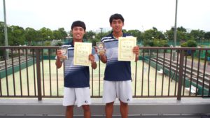 男子三位の青木(大阪府賢明学院高等学校出身)郡島(兵庫県報徳学園高等学校出身)ペア