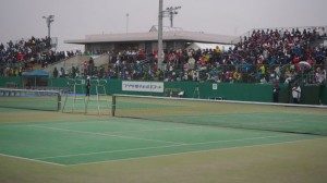 土曜日のダブルス選手権では雨が降り続く中での試合でした。