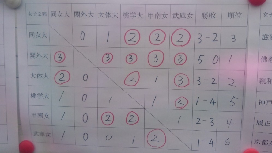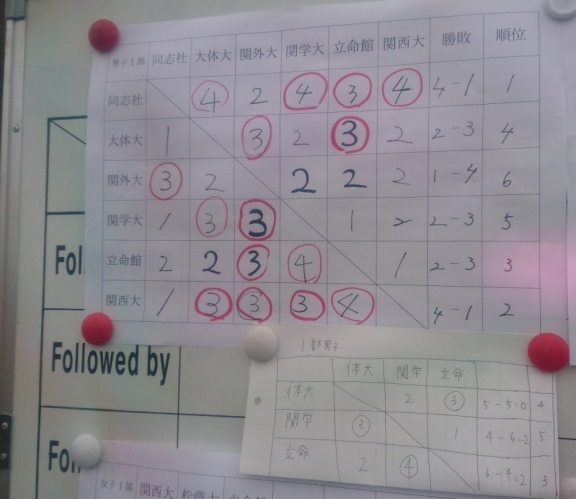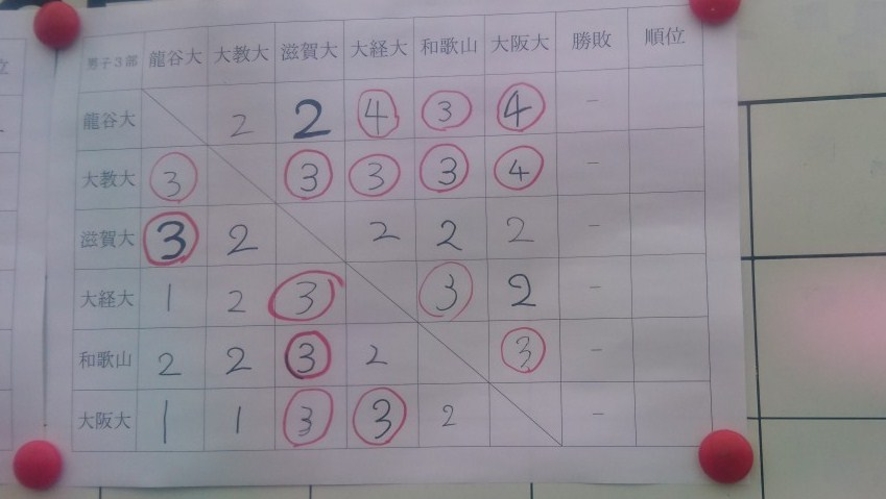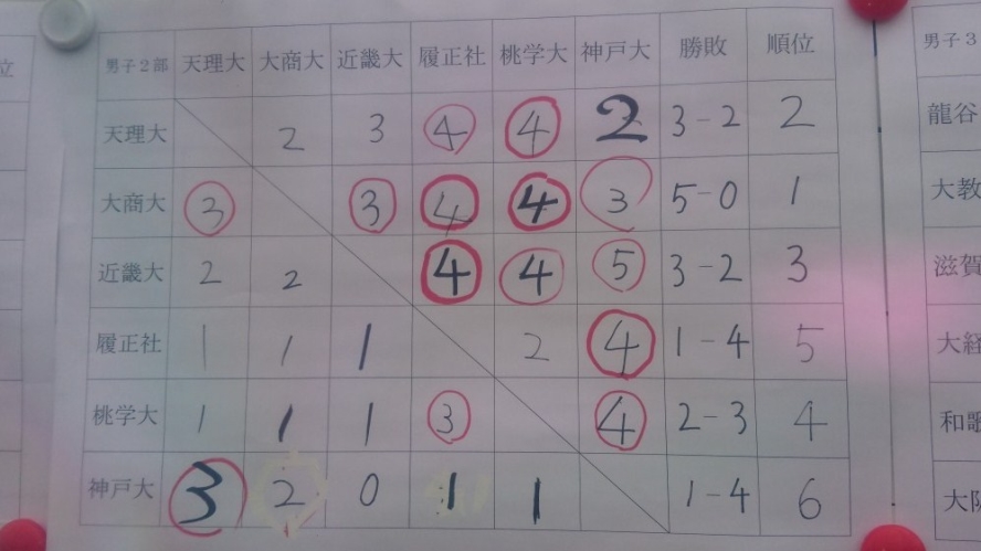 2日間を終えて、男子は1勝4敗の5位で2部残留