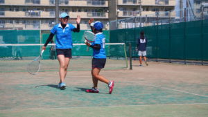 女子ベスト8の長郷・半田ペア、1年生ペアです。