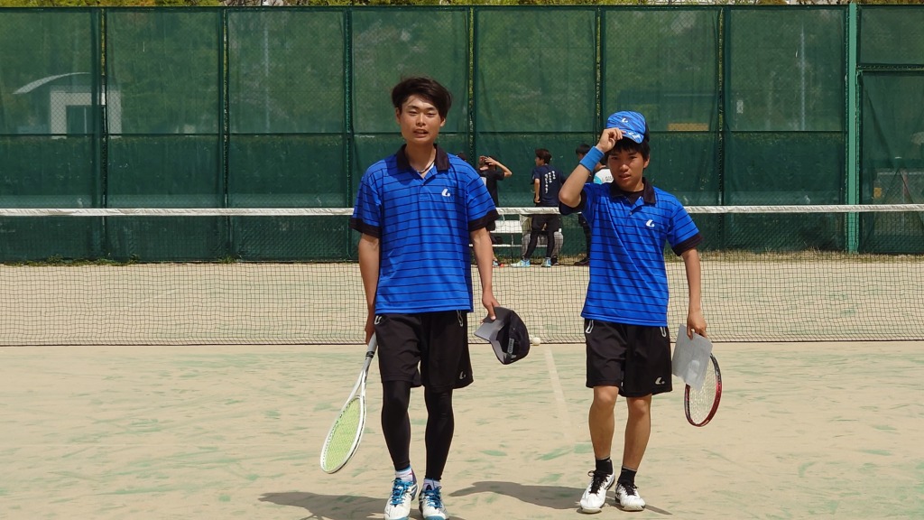 男子の二日目のベスト8に、中島・越智ペア(2年生)が勝ち残ることができました。