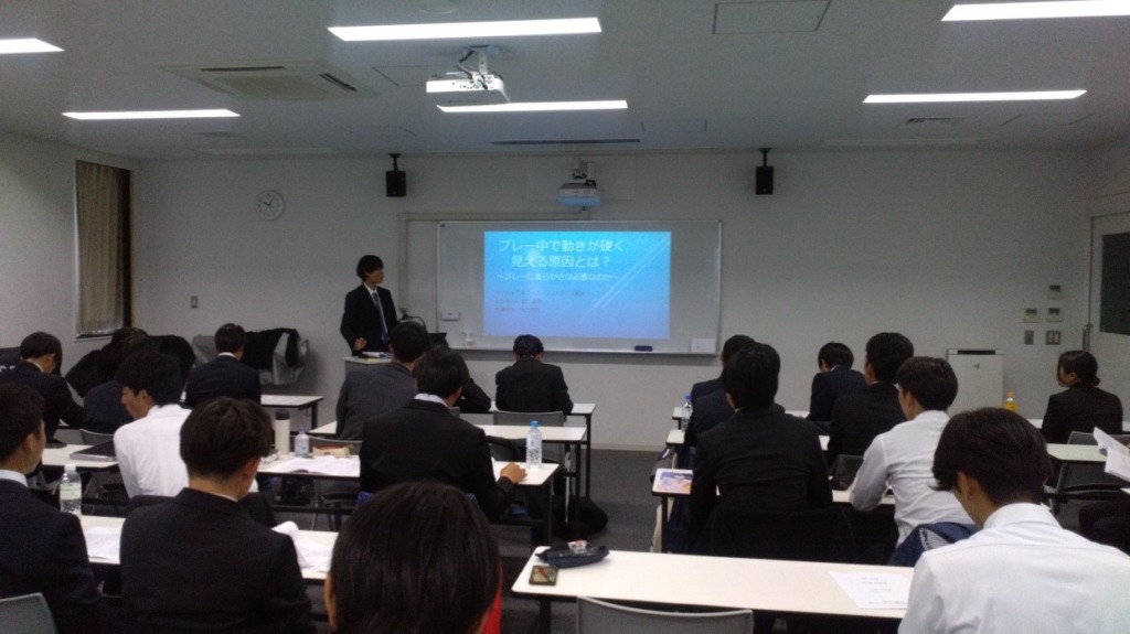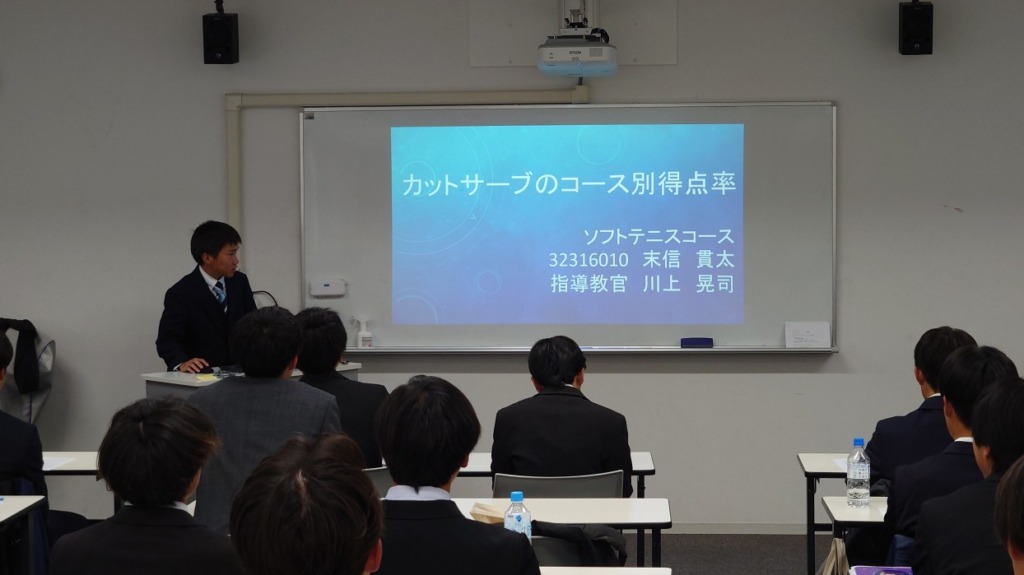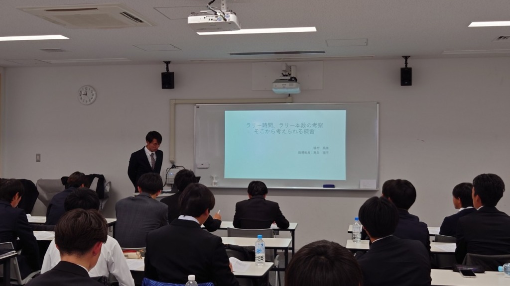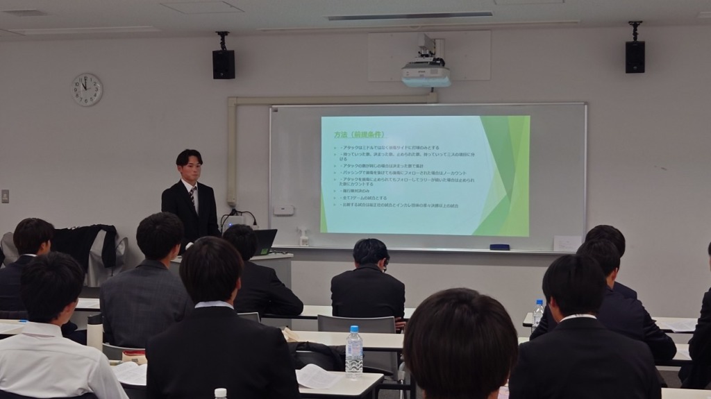 先日、ソフトテニスコースのゼミ論文発表会が行われました。