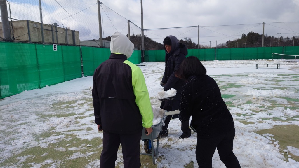 こんなに積もるのはめずらしく、最初は学生達も元気に雪だるまを作ったり、楽しく頑張っていましたが
