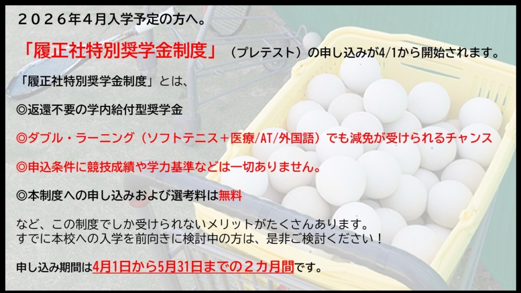 2026年4月入学予定の方を対象に、「履正社特別奨学金制度(プレテスト)」の申し込みが始まります。