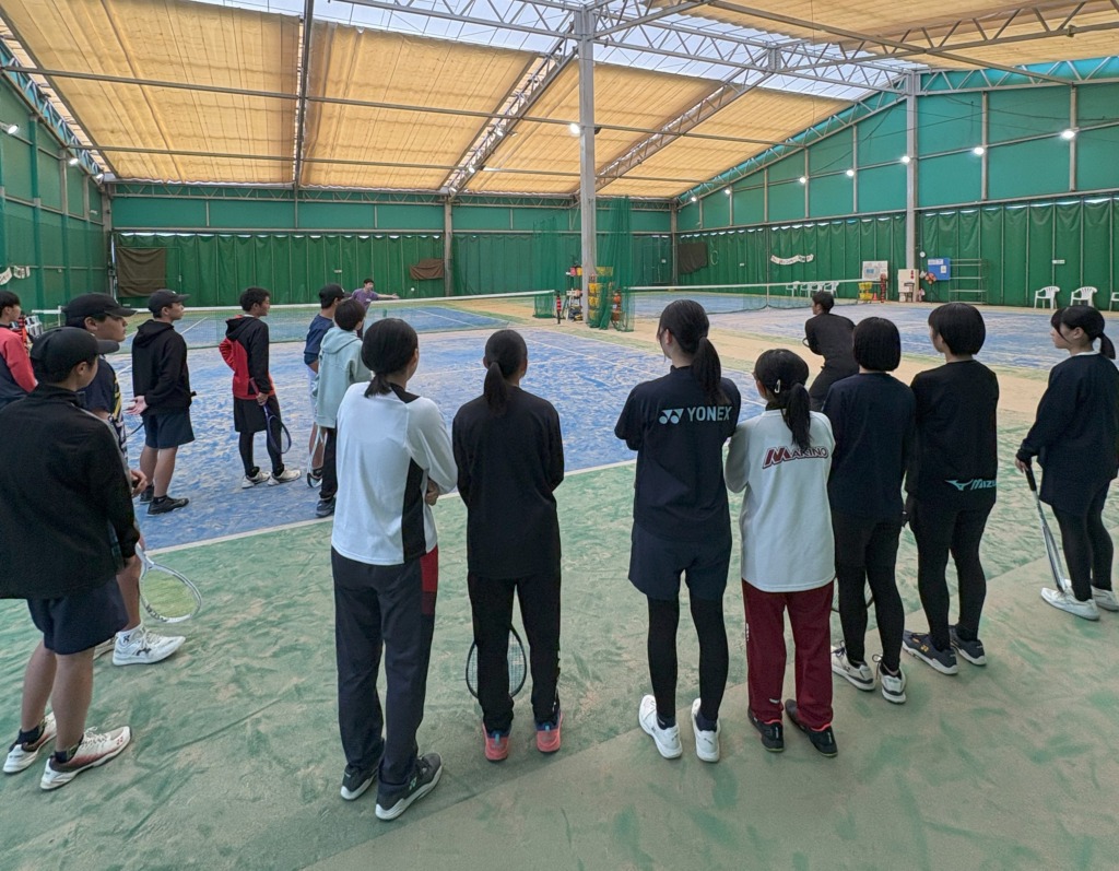 先日、本校履正社ソフトテニスコースの卒業生である、古川コーチ(現テニスエッグスクールコーチ)からの依頼を受け、大阪府枚方市にございますテニススクール、「テニスエッグくずは校」にて、中高生のスクール生を対象とした講習会を行いました。