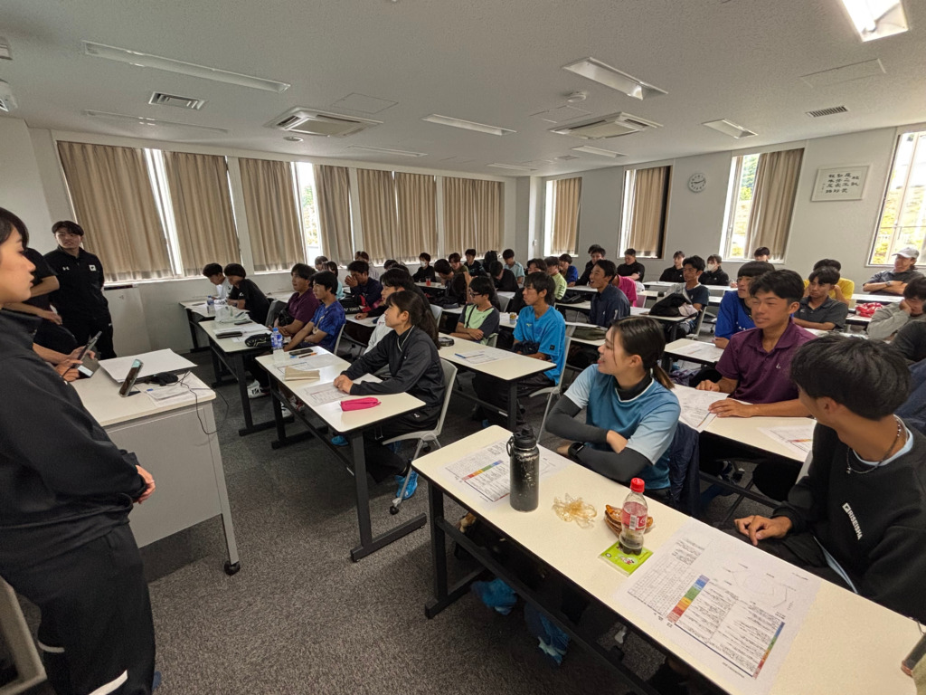 本日は、アスレティックトレーナーコース実習生からの、体力測定のフィードバックを練習前に教室で行いました。
