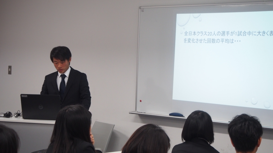 左の写真は東山君、テーマは「トップ前衛と履正社の前衛との比較」