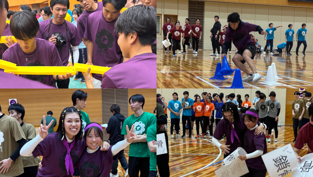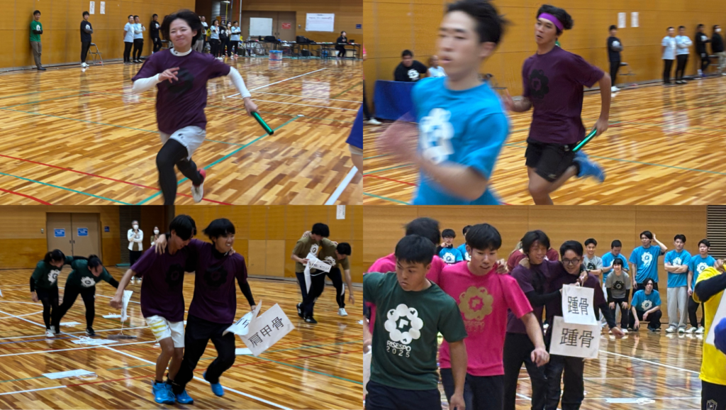 スポーツコース、医療コース、全体が集まり、全16チームに分かれ競技が行われました。
