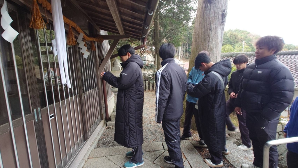 新年の挨拶を行い、実技前に毎年恒例である止々呂美神社へ初詣に行きました。