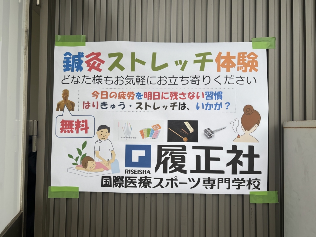 鍼灸学科の先生と学生が、鍼灸針や電気等で身体の手入れを無料でしてくれます。