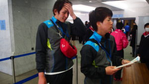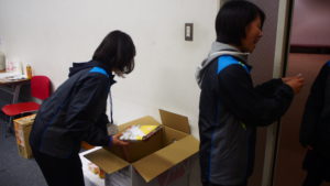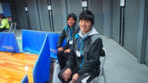 選手、スタッフの皆さんの昼食会場でお弁当を配ったりと裏方を担当してくれた