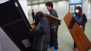 アリーナ席担当の木村君、西村君、千本君、西田君