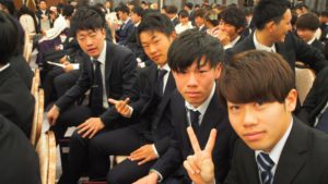 酒井さん、山崎君、川端君、金川君です。柔道整復学科を卒業します。