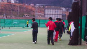3/20(火)本校テニスコートにて兵庫県の市川高等学校男子ソフトテニス部の皆さんと合同練習を行いました。
