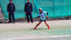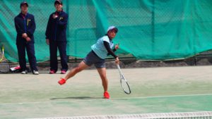 2番手、シングルス長郷さん(兵庫県立神戸商業高等学校出身)が危なげなく勝利