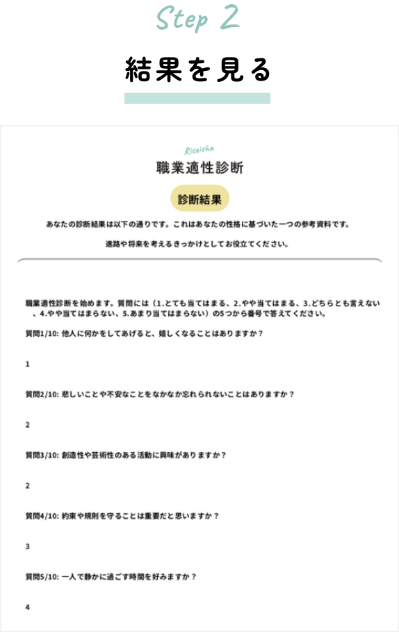 - ※ 診断の性質上、直感でご回答いただいたほうが、より診断結果の精度が上がります。そのため、一度答えた設問には戻ることができませんので、あらかじめご了承ください。