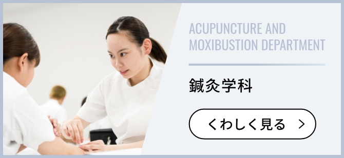 鍼灸学科夜間部に入学(現在は午前部/午後部のみ)。平日は朝8時から5時まで整骨院でアルバイトを行い、夜6時半から10時ごろまで授業を受けた。アルバイトは在学中の3 年間を通して勤務し、鍼灸師、柔道整復師の先輩たちの背中を見て多くを学ぶ。多忙な日々だったが同じ目標を持つ同級生や教員とのつながりが深く、勉強が続けられる環境があった。