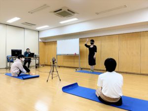 ↑この日の参加者はヨガ初体験ということで、ヨガについて丁寧に説明してくださる辻本先生。