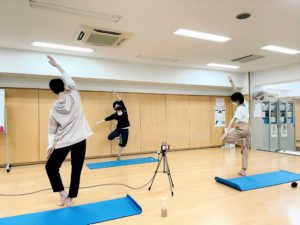 ↑今回行ったパワーヨガは、本来はテンポよく、連続してポーズをとっていくため、なかなかハード。ゆっくりやっても3巡目あたりで息が切れてくる参加者のみなさん。