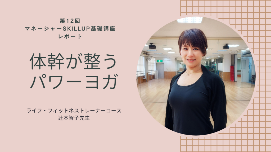 テーマは「体幹が整うパワーヨガ」。講師はライフ・フィットネストレーナーコースの辻本智子先生です。