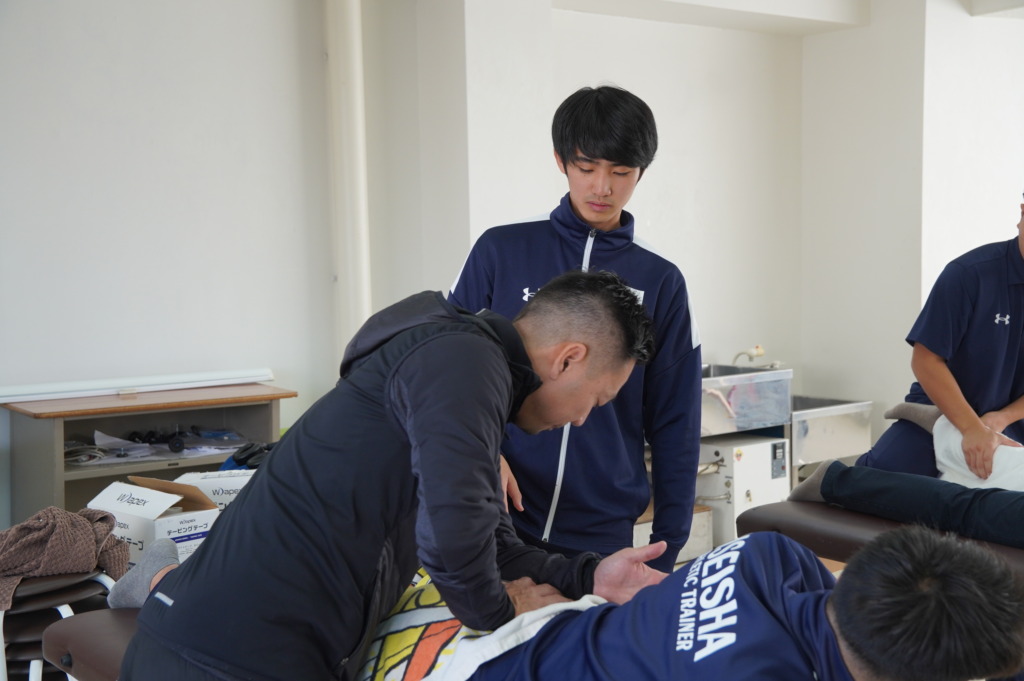 ケガをしている学生のケアをしたり、再発予防のトレーニングを考えたりして、充実した時間を過ごしていました。