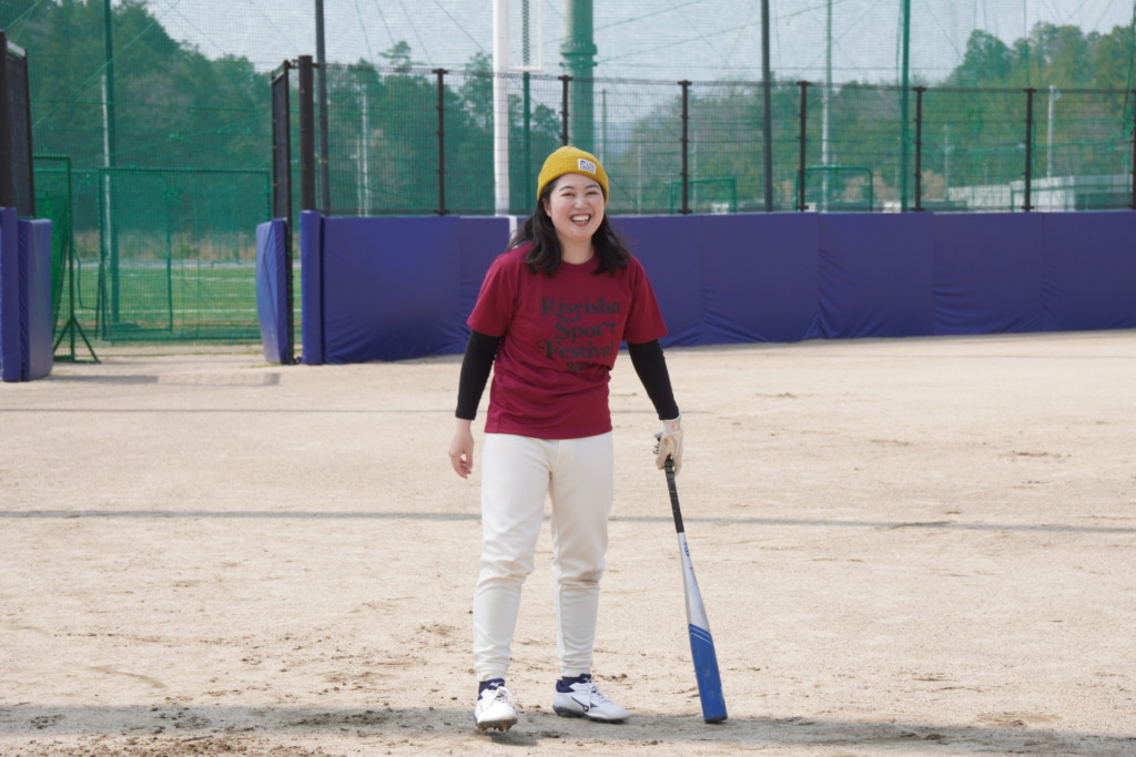 カーン、カーンと打球が遠くへ運ばれていくたび、「弓埜先生、かっこいい~~!」と黄色い声援が飛びます。箕面キャンパス事務の山本さんと祢木さんも「やってますね~」と、のぞきに来てくれました。