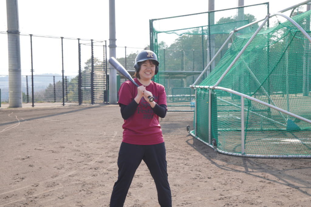 推し球団はソフトバンク。高校野球観戦のために甲子園にも足を運ぶという、鍼灸学科の加藤先生。野球は初心者ですが、投打ともに筋の良さを感じます(日開先生の愛弟子?)。