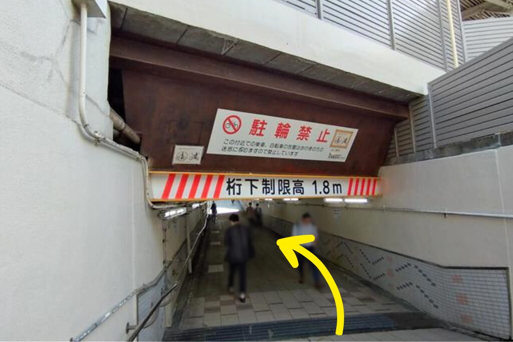 少し歩くと、駅側にトンネルがあるので、そちらに進みます。