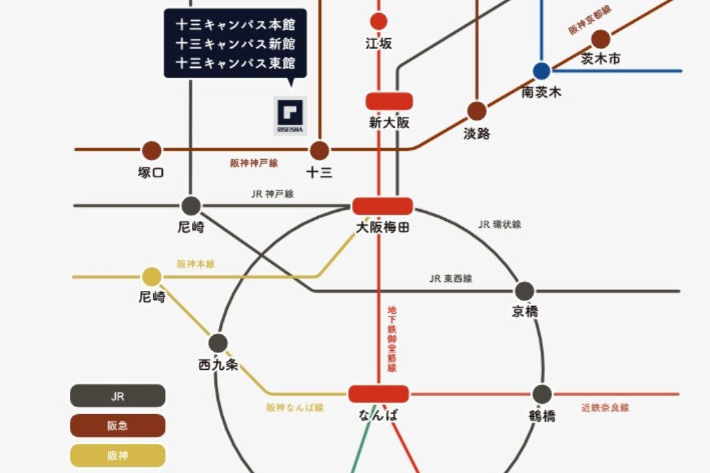 ※十三キャンパスには、本館と体育館もあり、こちらで行き方を紹介しています。