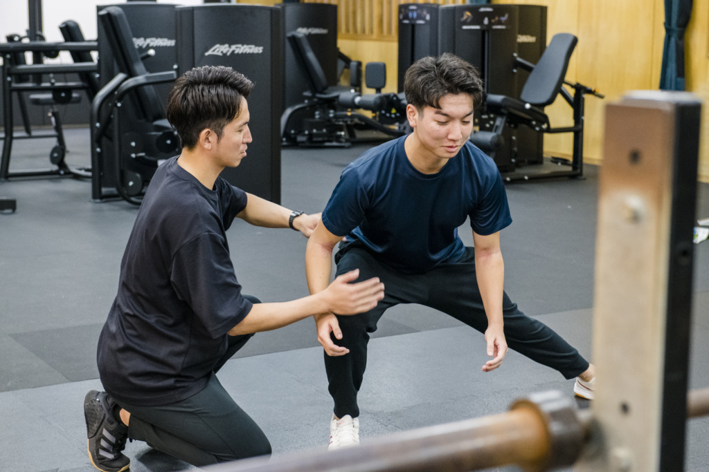 トレーニング方法を指導するときは、トレーニング機器の安全な使い方やフォームなどを、丁寧に指導します。