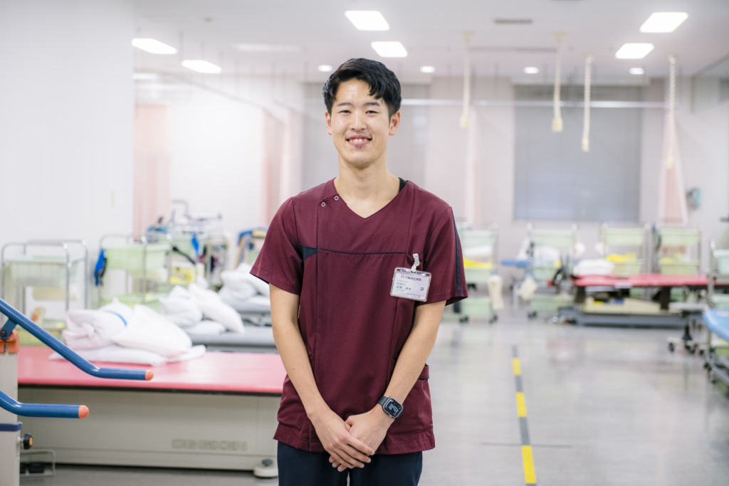 第1回は、理学療法学科を2022年に卒業し、「大阪回生病院リハビリセンター」に勤務する石部直也さんにお話を伺いました。