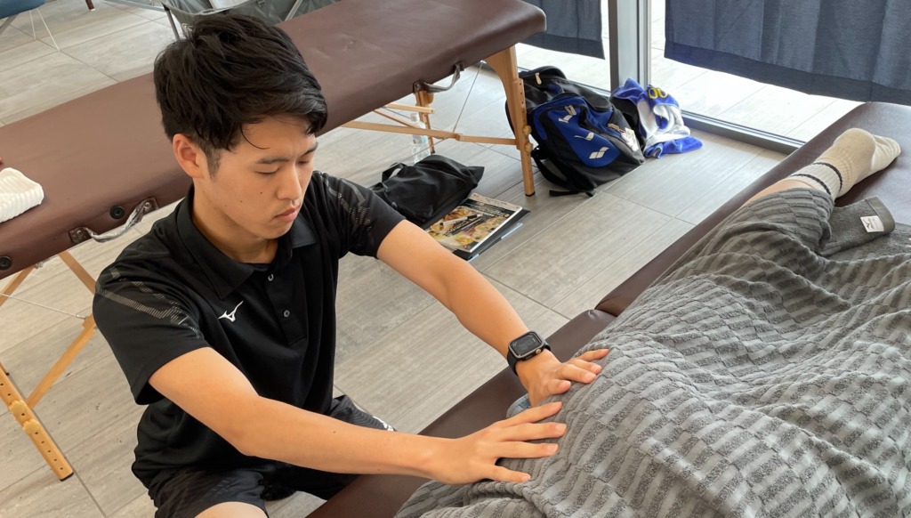 学校独自の履修プログラム「ダブル・ラーニング制度」を利用して、アスレティックトレーナー資格の取得も目指しました。