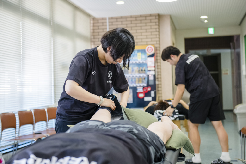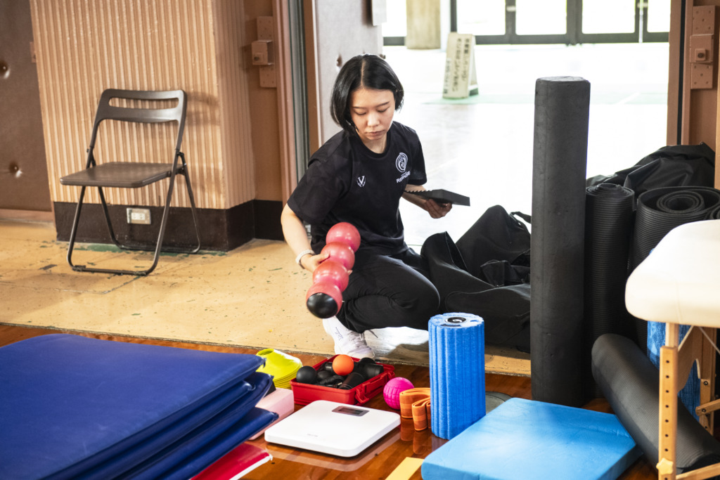 私は、プロバスケットボールチーム「鹿児島レブナイズ」のアシスタントトレーナーをしています。