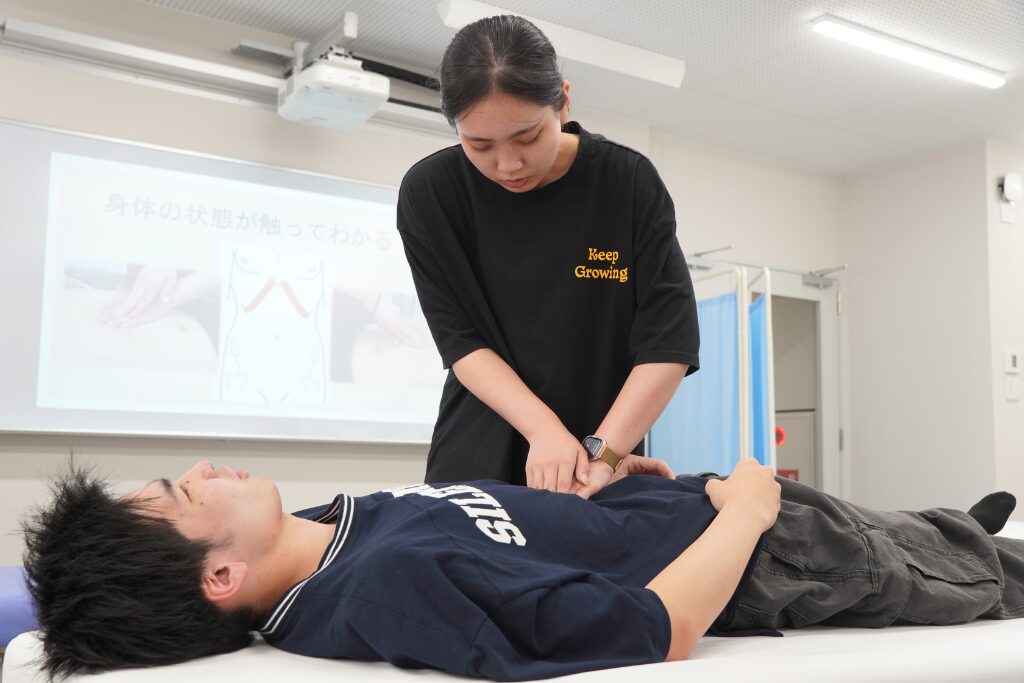 だんだんと、教室はリラックスした雰囲気に。鍼灸学科の学生は、こうした空間を作り出す心遣いも、普段から磨いていることが分かります。