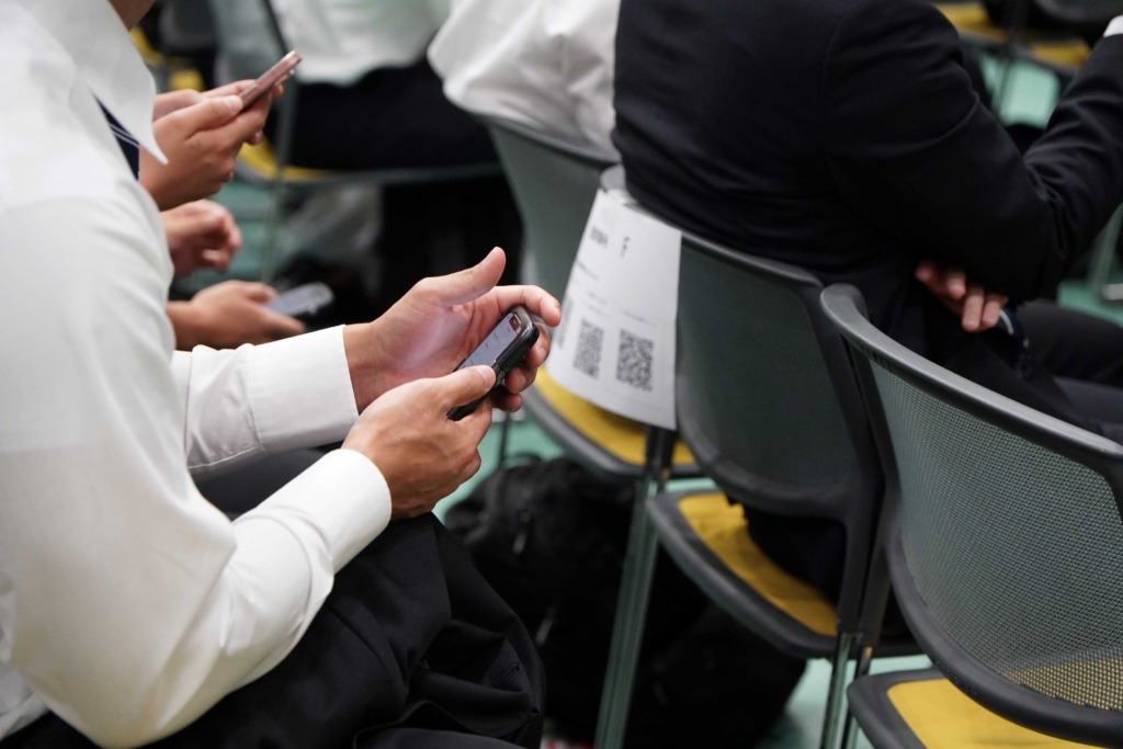講演後は、ケーススタディが与えられ、学生たちは「(事例が)ハラスメントに当たるかどうか」を考えます。二次元コードを使って判定を投票していました。小岩井先生に解説いただき、より理解が深まりました。